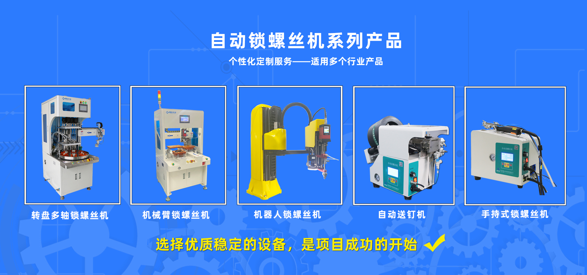 精心自動鎖螺絲機共有9大系列,數10種型號,適應任何行業的鎖螺絲需求。
