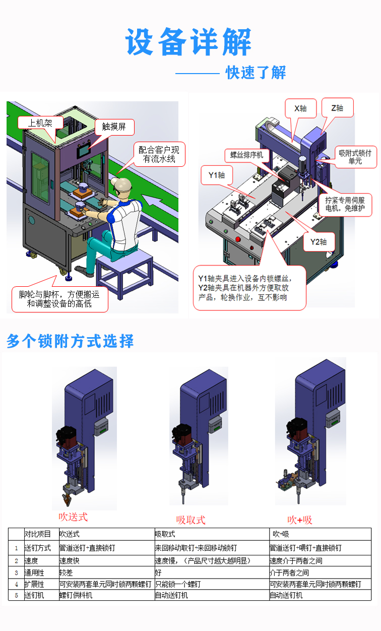 自動(dòng)送釘:人工只需把螺釘?shù)谷肓隙罚歪敊C(jī)構(gòu)會(huì)自動(dòng)供釘